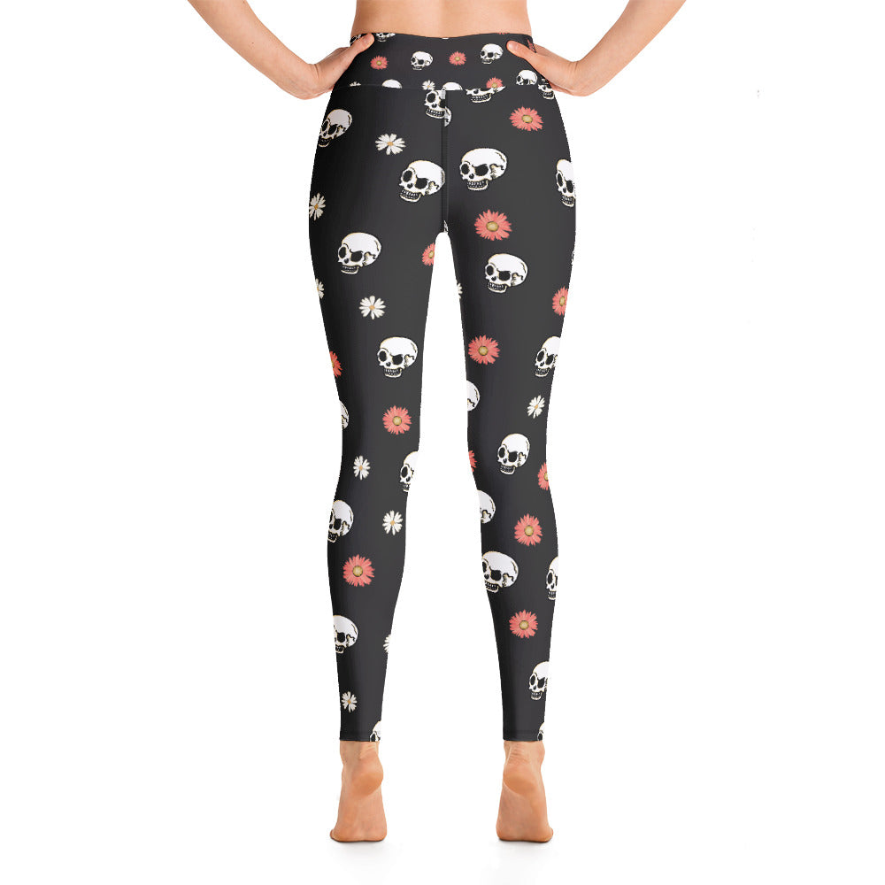 Skull and Flower Yoga Leggings
